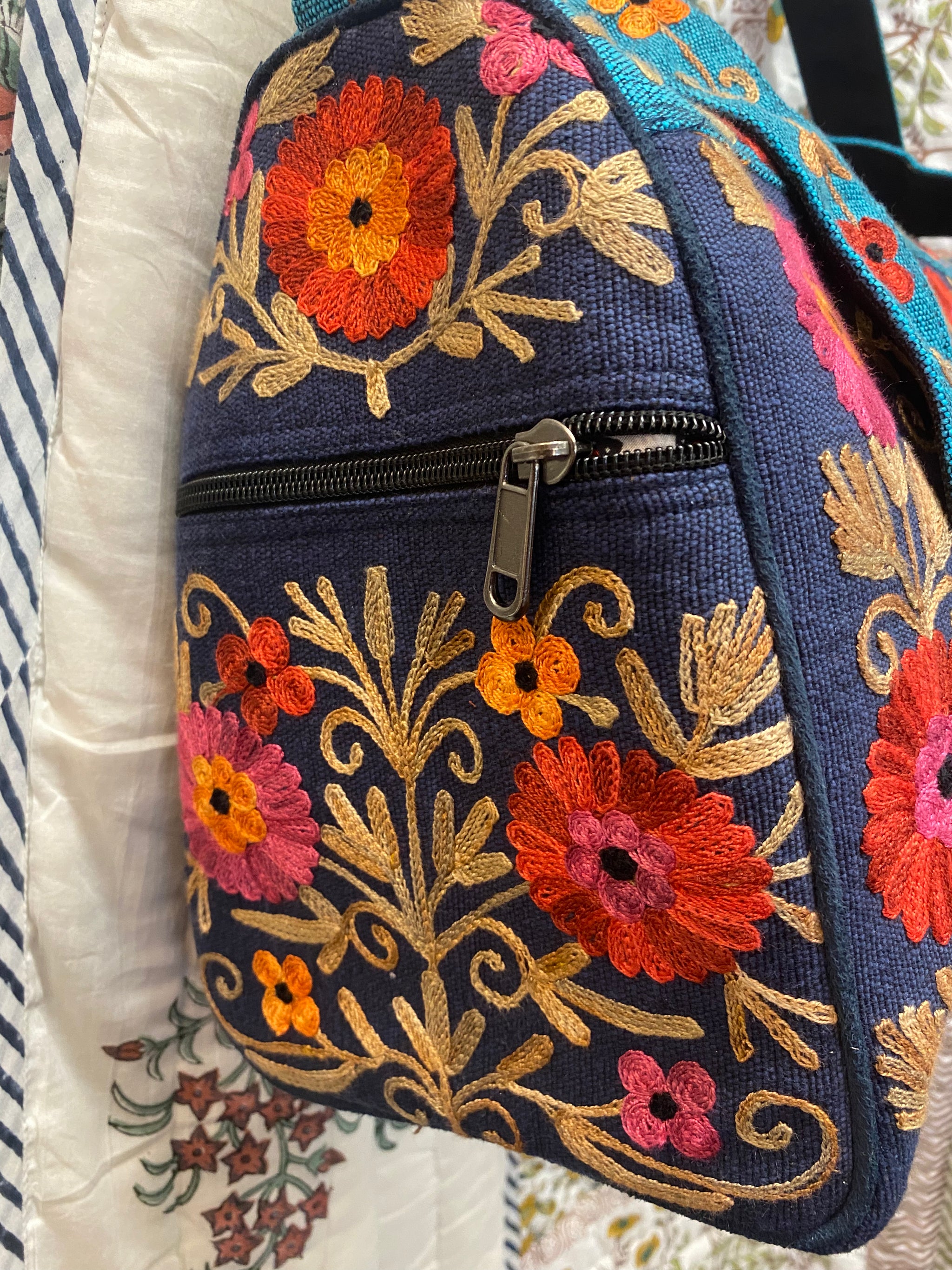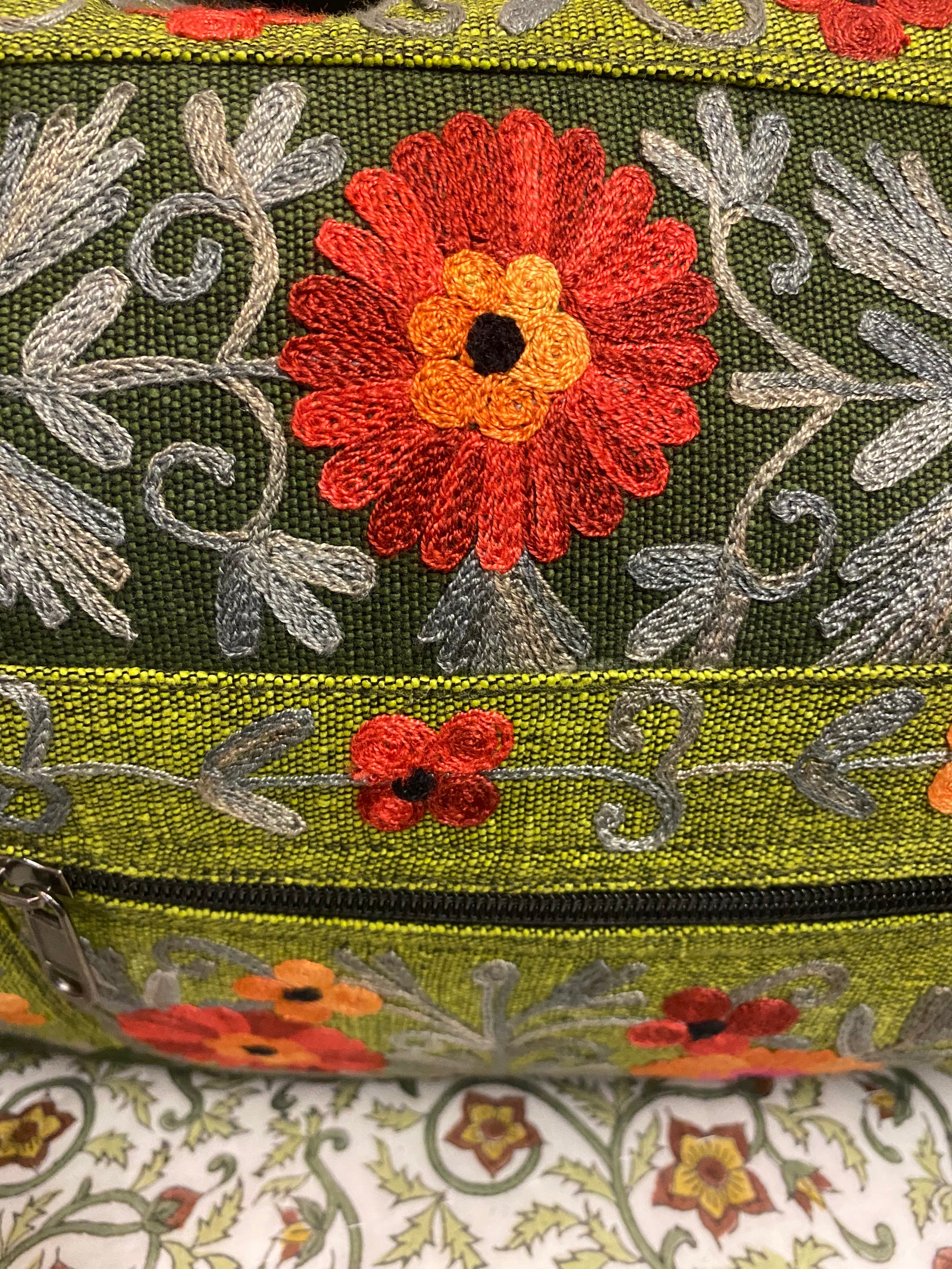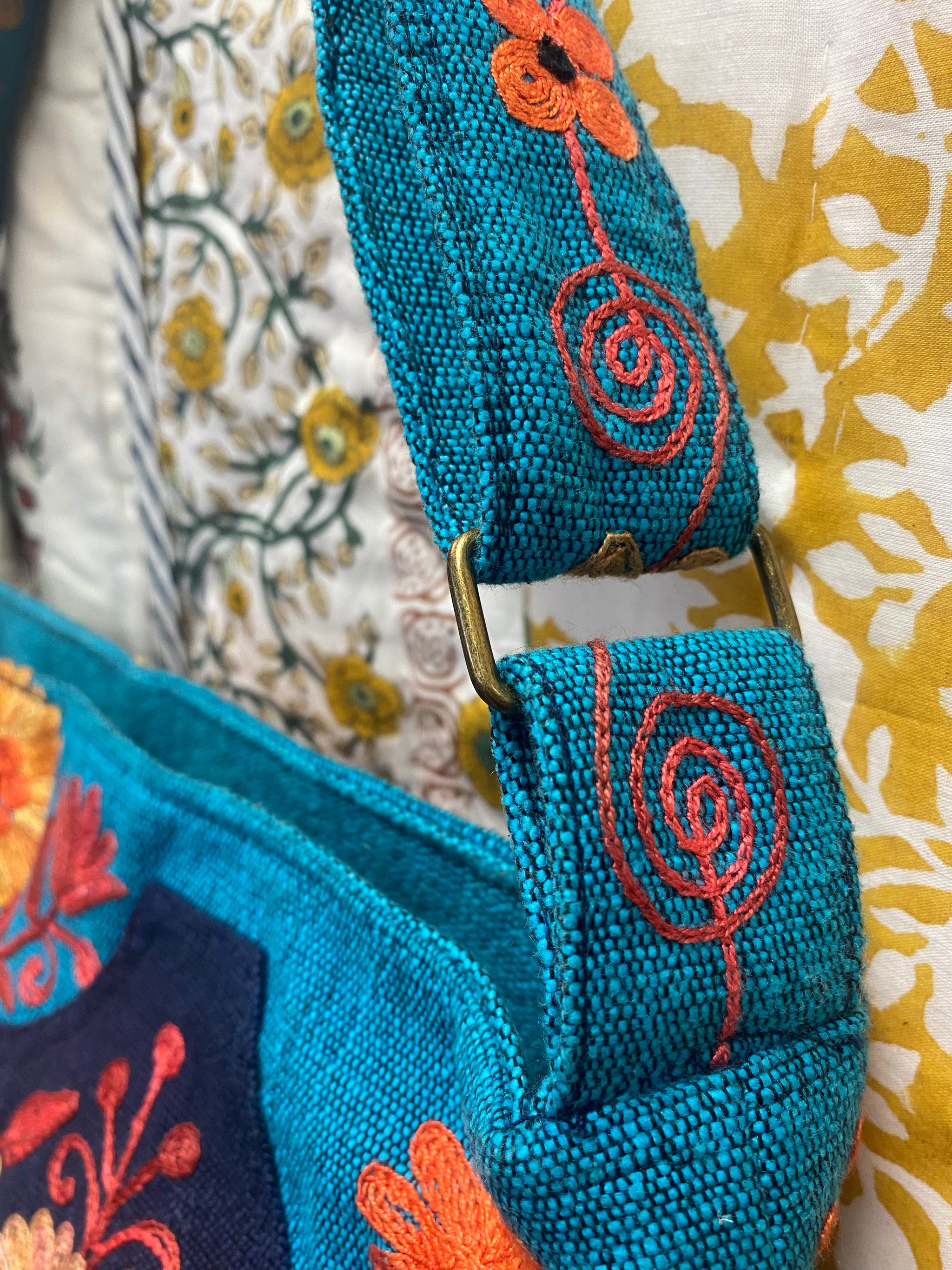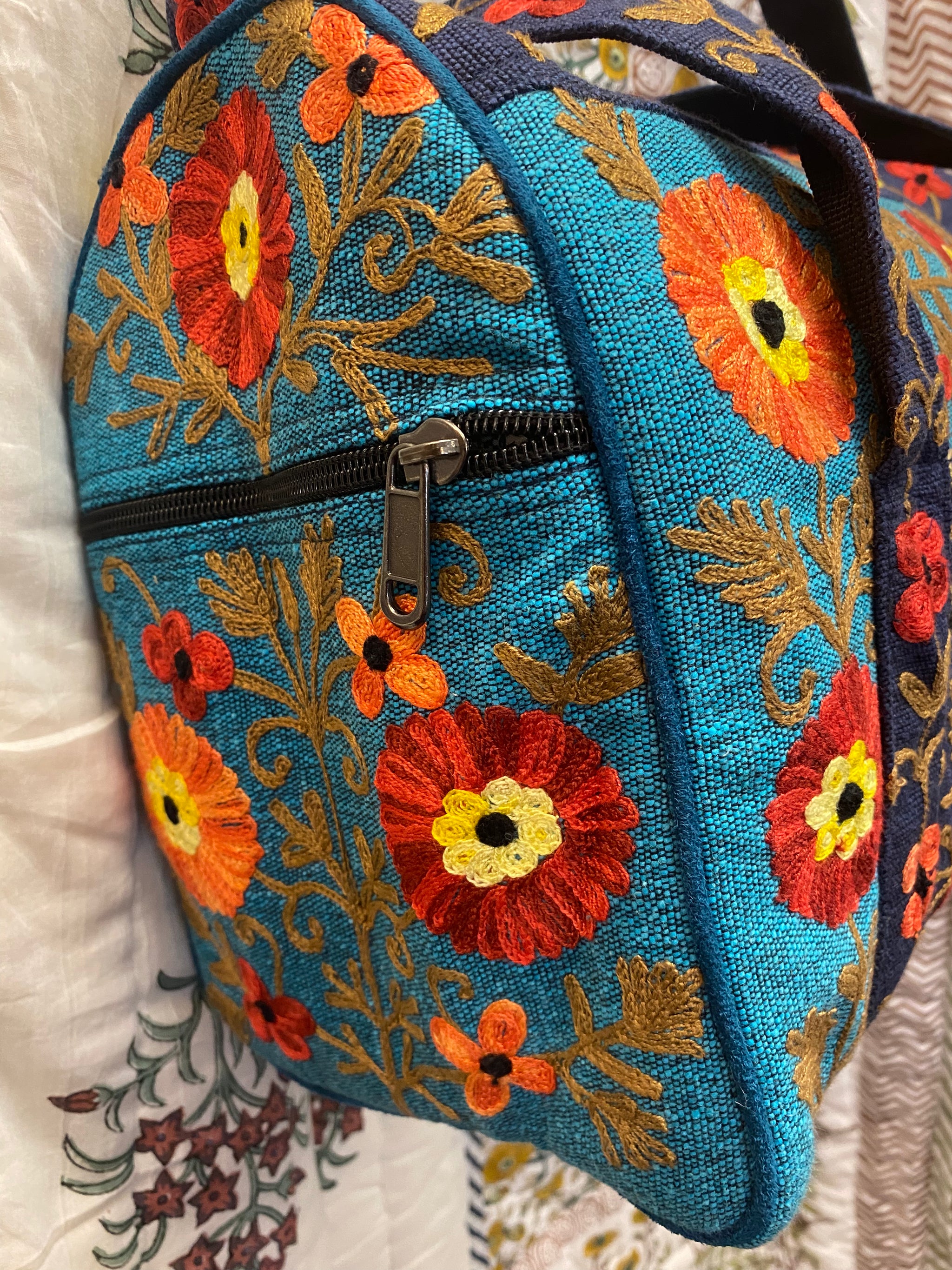 Product Description:This small hand-embroidered travel duffle bag is designed to be both beautiful and practical. Made from strong hand-woven cotton and finished with detailed floral embroidery, it’s a practical and...