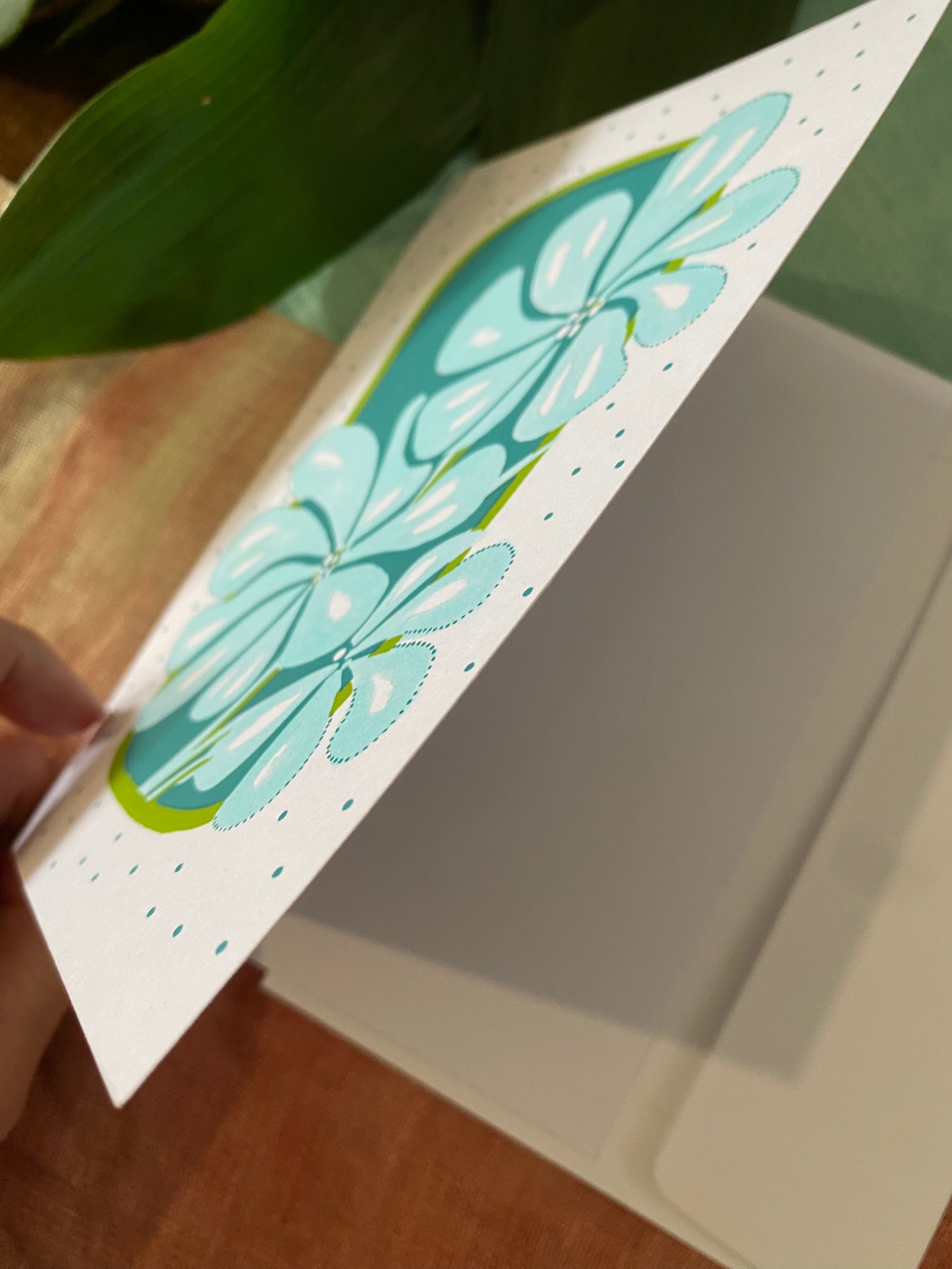 Retro Teal Bloom – Fair Trade, Hand Screen Printed Greeting Card (Silence India)