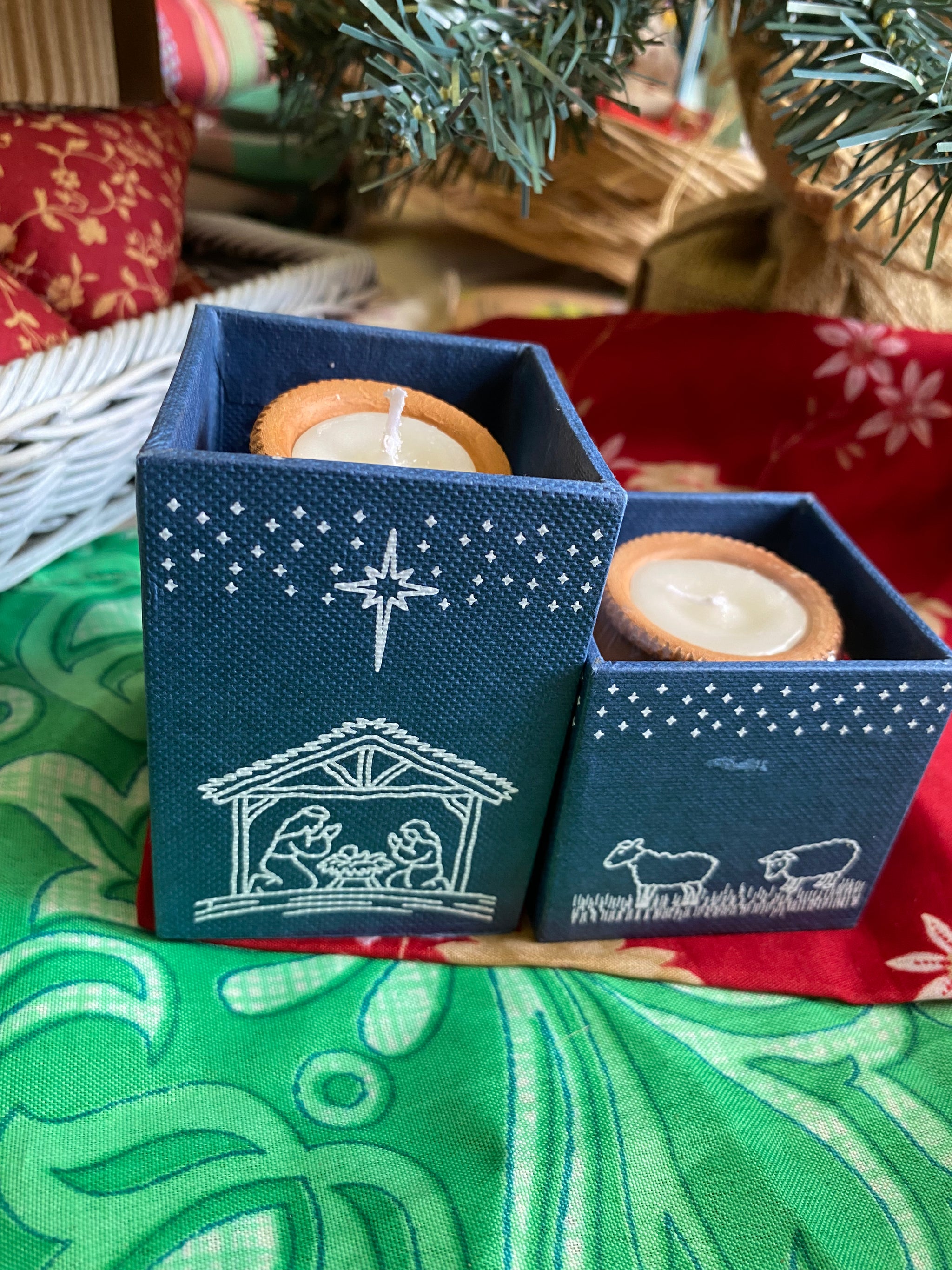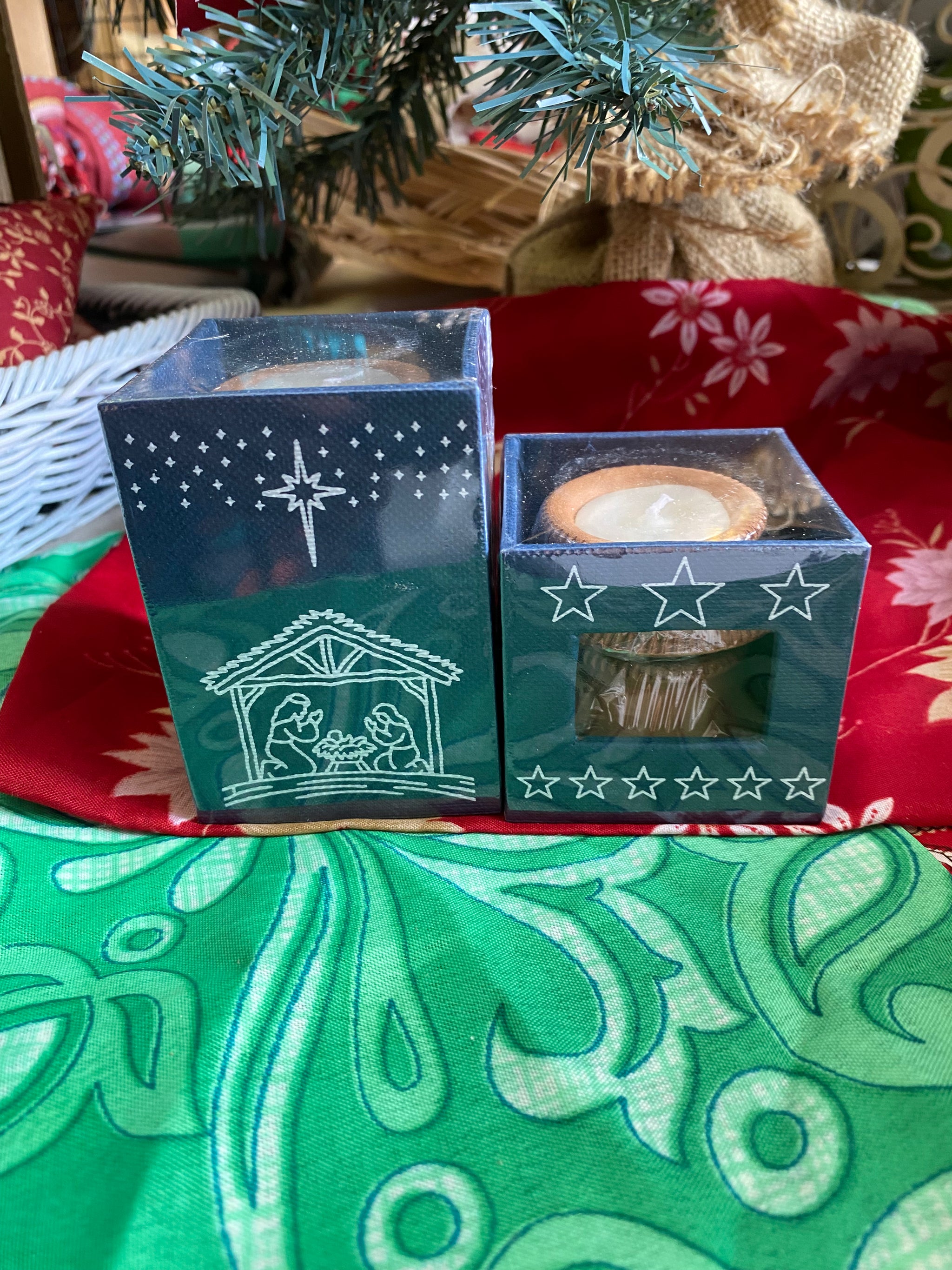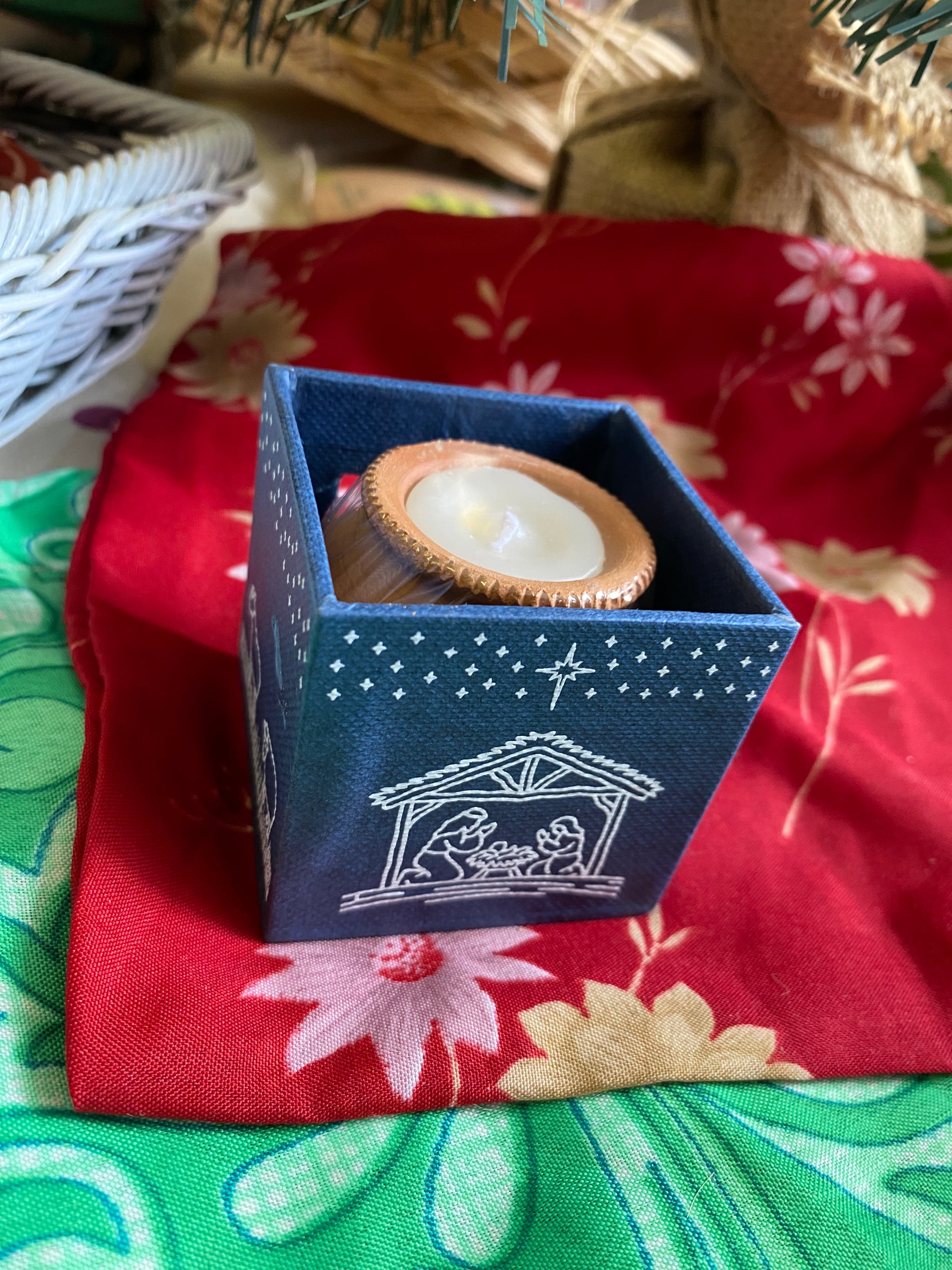 Nativity Tealight Set – Fair Trade, Hand Painted Recycled Box with Soy T-Lights (Silence India)